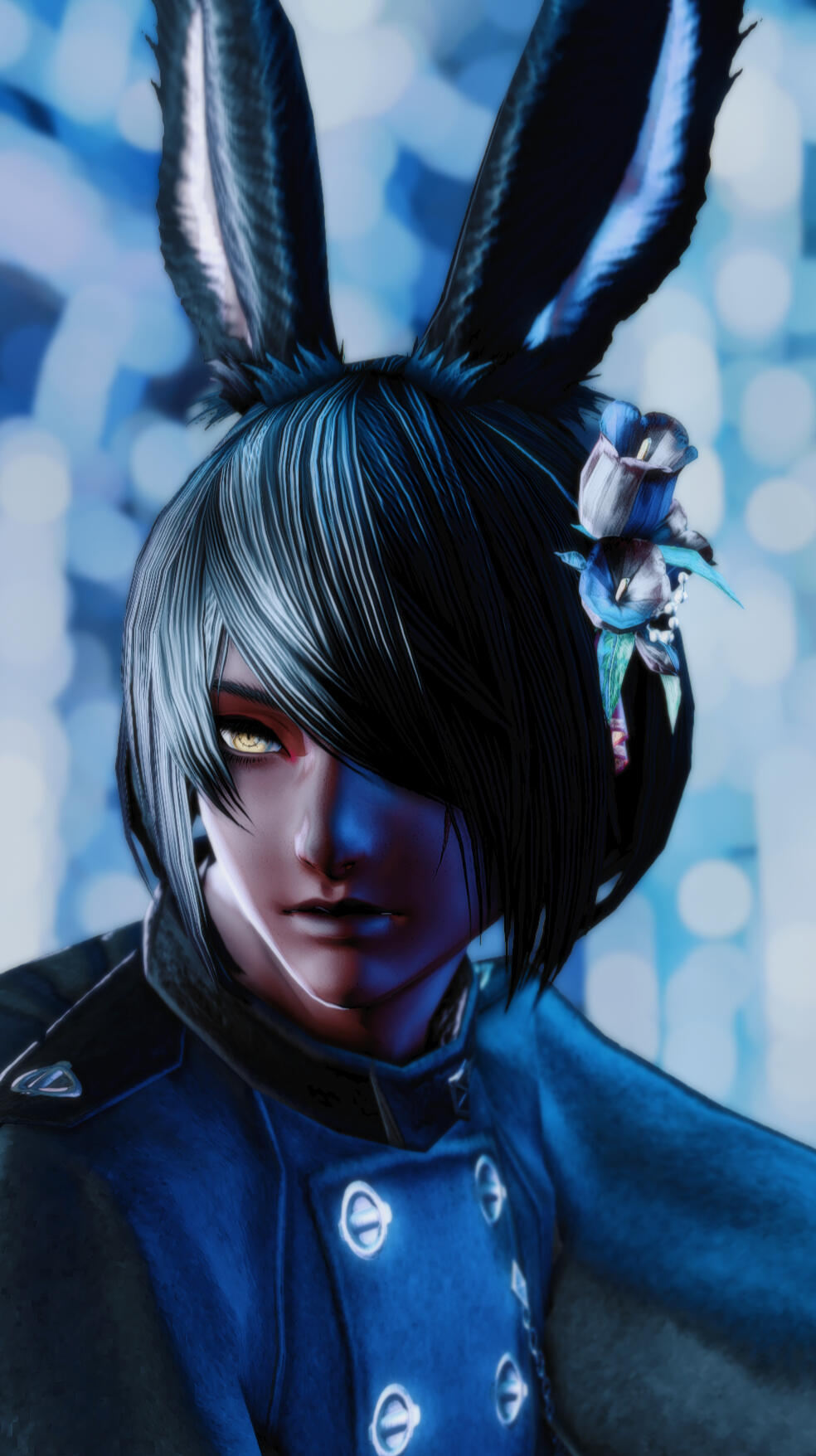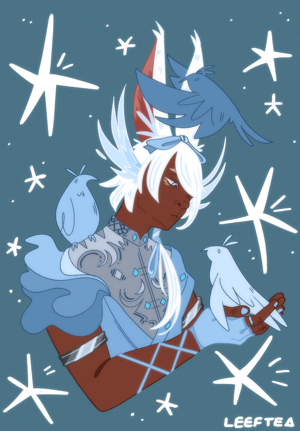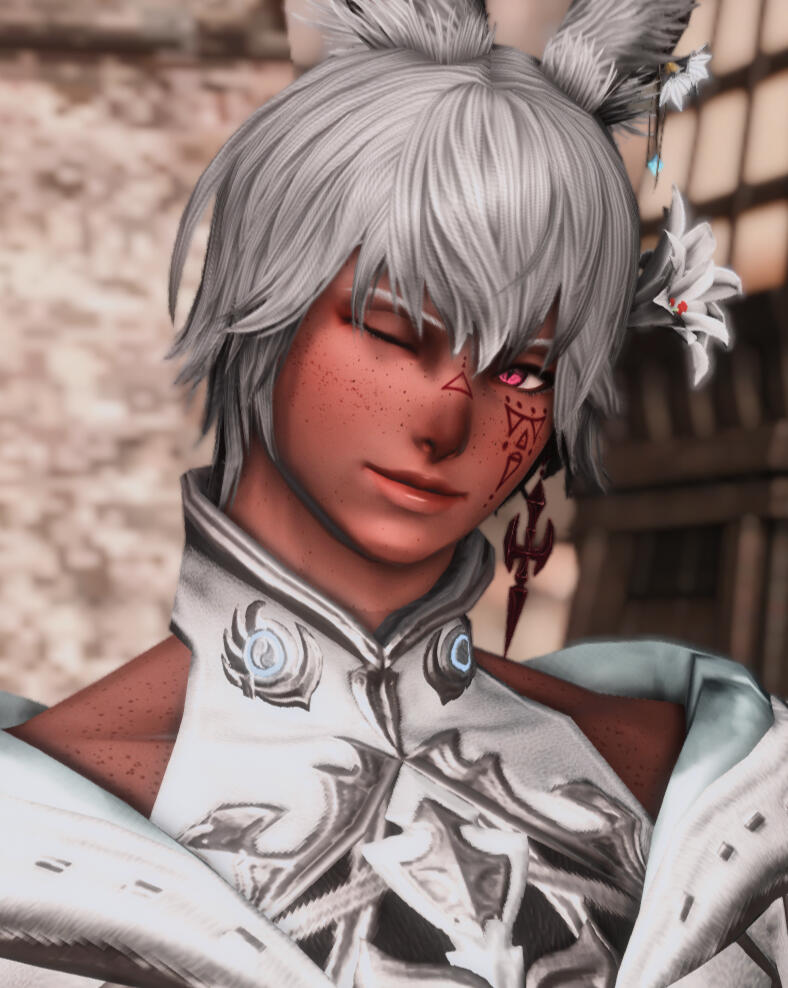 Liezel hails from Dalmasca, raised by the Rava viera of a different tribe as well as the Moogles, after his parents left him to fend for himself deep within the woods of Golmore Jungle. They were unable to care for his strange illness that involved fevers, hallucinations, and unusually enough, coughing up flower petals, and left him for the wolves. The Moogles knew immediately that the bun had developed something known as Hanahaki Disease and took him in, doing do all they could to alleviate his symptoms. He grew close to his newfound companions, and this illness of his seemed to be improving bit by bit, until an invasion by the Garlean Empire warranted his escape, severing him from family.Stranded and heartbroken, Liezel's condition worsened, and she found herself in a struggle to stifle the flowers in her chest from blooming. It is not without the sincere, gentle care and kindness of Mother Miounne in Gridania that Liezel's blooms calmed down once more.Far from home, limited knowledge of her illness, and without the care of the Moogles, the future felt terrifying. Yet, Liezel found the resolve to venture out into the world to learn as much as she can of her disease, and to figure out how to cure it, if any method exists at all.One day, on an errand for the proprietress, Liezel runs into Yda and Papalymo, and it is though their chance encounter does the bun get swept into a storm as the budding Warrior of Light.