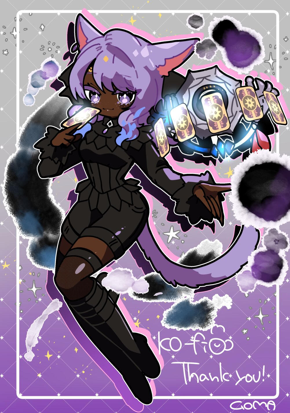 Yoh'na is a young, snarky girl — she's outgoing, quick-witted, chaotic, and a damn good negotiator. She is the sole daughter of a merchant family, and now finds herself all over the world in helping her clients.Yoh’na was blind at birth; this caused her to have a heightened sense of the aether around her since she was young. Yoh'na uses aether currents to “see,” and she can sense the general placement of where things are, the aether of people, and of other life around her. While her carbuncle is intended to be her service pet, he’s more so a friend to her than a guide.Despite her blindness, she has a keen eye for wares and doesn't hesitate to hustle for gil. She takes pride in being a con artist. She uses her profits moreso to give back to the community than for herself, and tends to mess with those who she believes lack better moral judgement. Eat the rich, as they say!